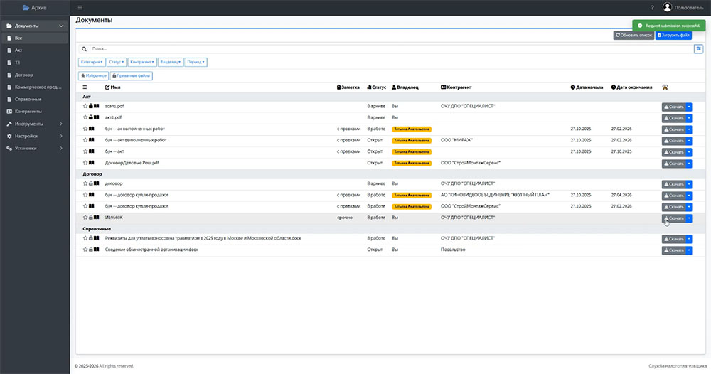 Подготовка и отправка отчётности